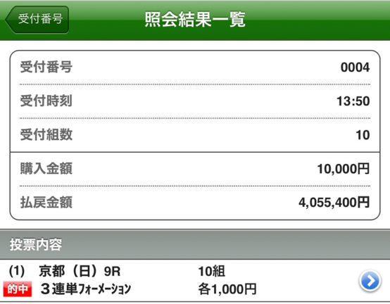 40万馬券を的中させただけじゃなくて人生初の4帯獲得!