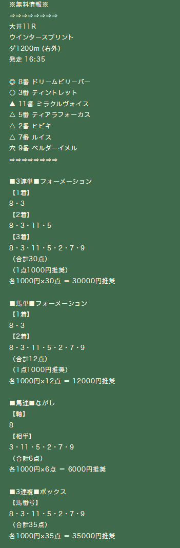 1月14日(水)大井11Rの無料予想で