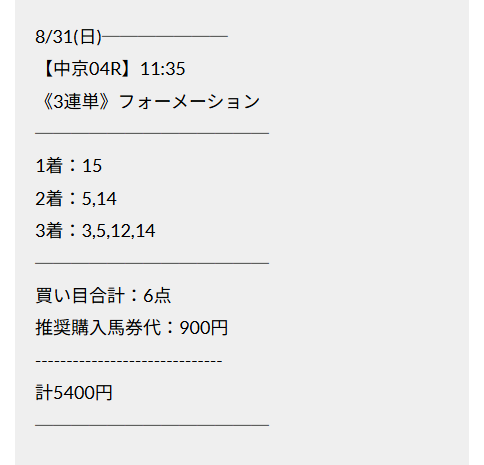 そして31日(日)中京4Rの的中の買い目画像支援UPしておきます