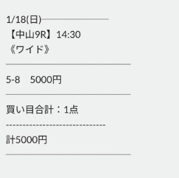 18日(日)の無料予想で中山9Rを買い目点数1点でワイド的中