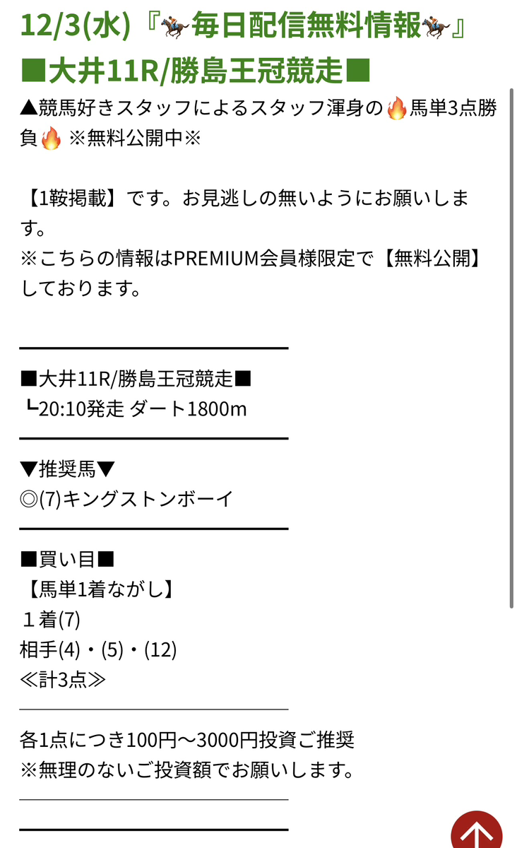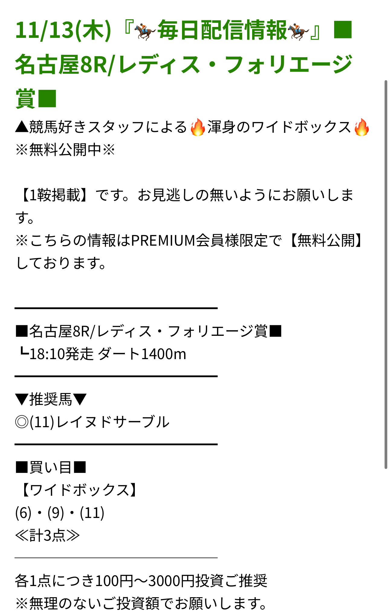 馬帝国が無料予想的中の法則でPUSHしていたPREMIUM