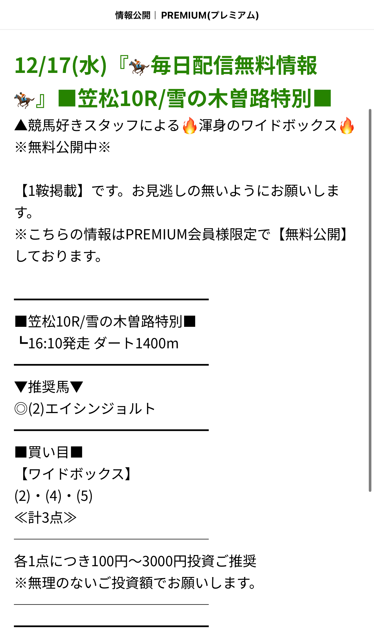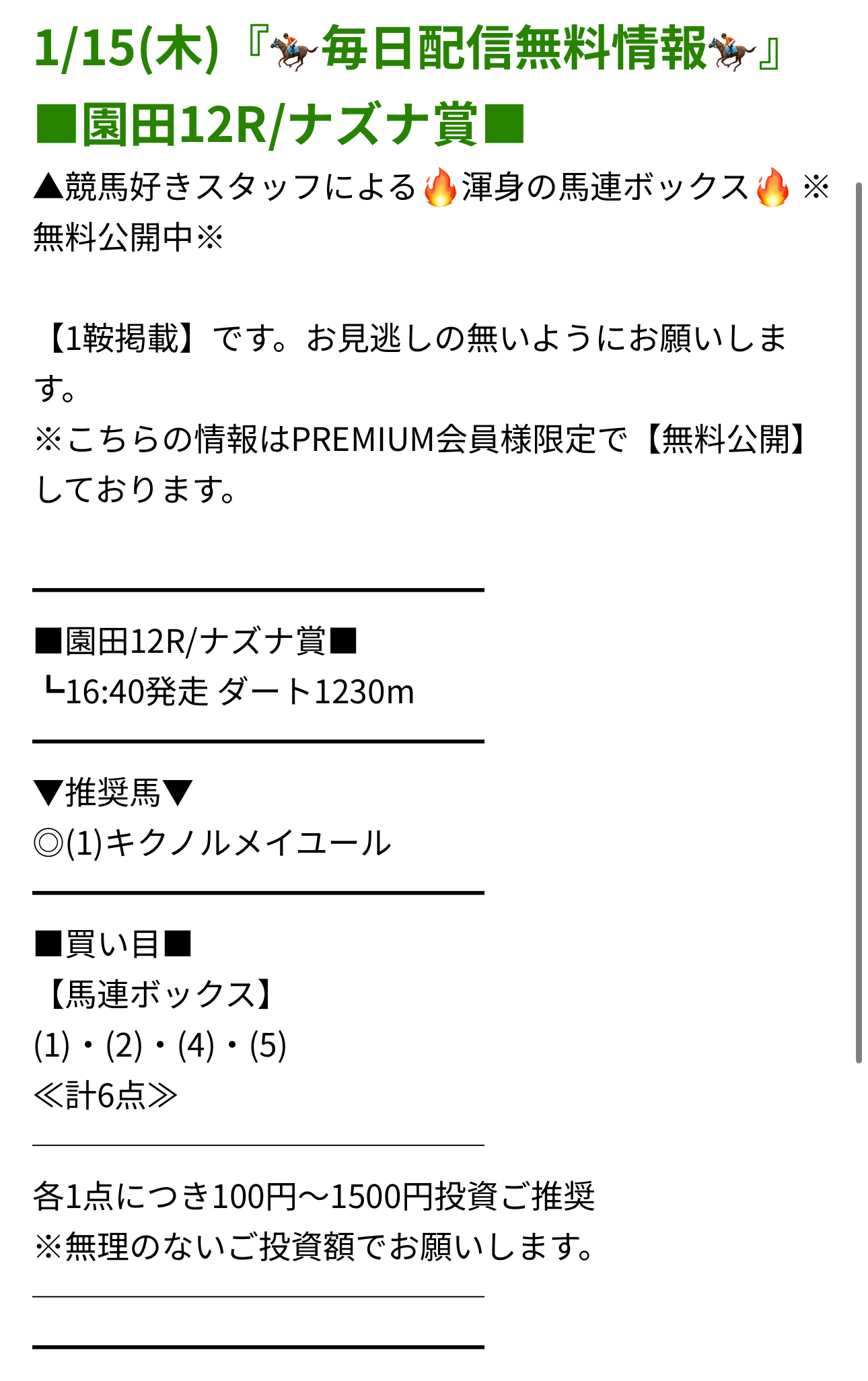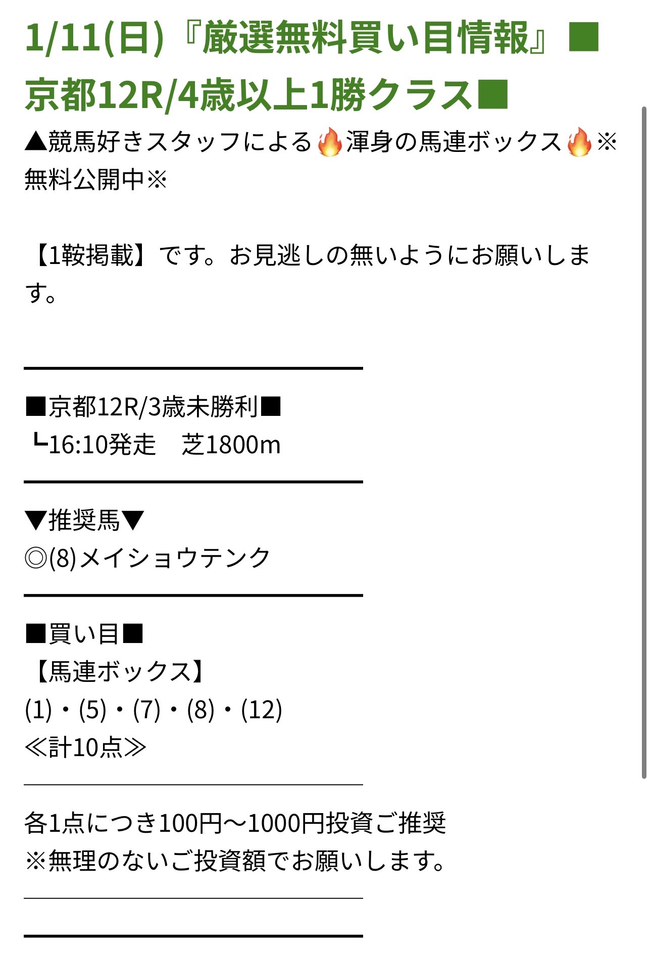 24日(土)の京都最終レースの無料予想を貰って馬券購入