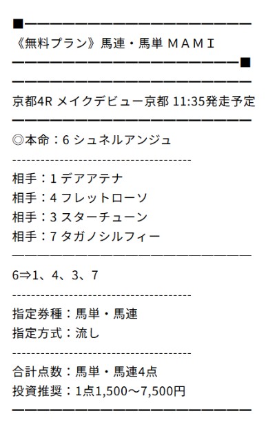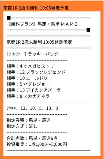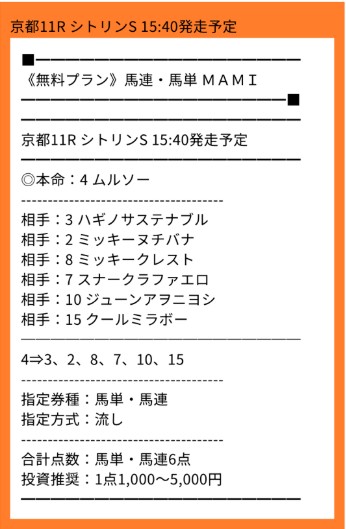 京都11Rの馬連馬単の2馬券種を買い目点数6点ずつで