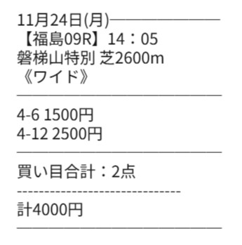前日の福島2Rに続き、11/16福島7Rもバイアスナビを購入。ここが本当にヤバかった…。結果は13-14-15で3連単158,940円。フォーメーション9点×1点600円=5,400円の勝負で、払戻は953,640円とミリオン目前。2日連続でこのレベルの配当を引きずり出すのは、もはや“偶然”では片づけられません。トリガミ覚悟で広げるのではなく、「当てにいきながらも配当を最大化する配置」になっていて、本物のプロ集団だと感じました。