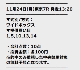 3連休最終日の24日(月)東京7Rでワイド3種全部的中