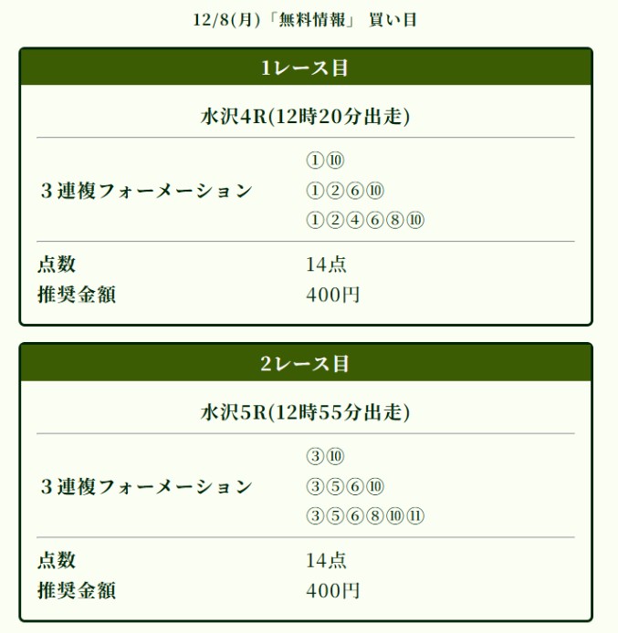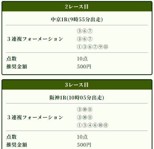私はサイトの買い目指示通り1点300円で勝負しましたが