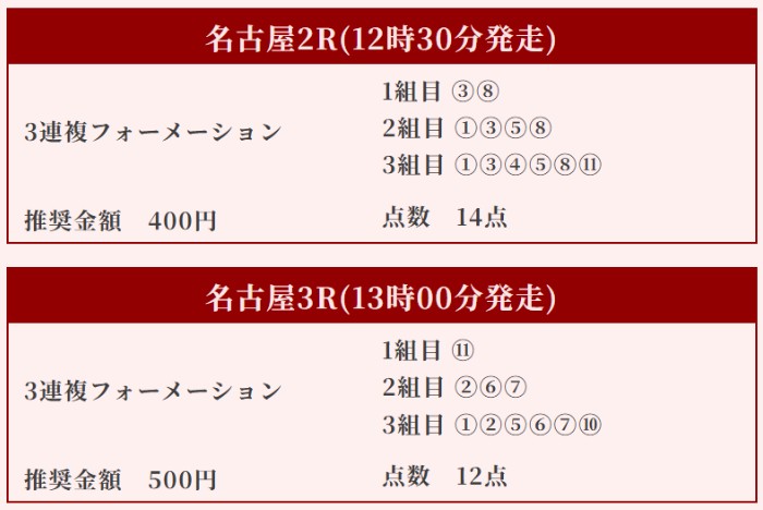 名古屋2Rと名古屋3Rで的中!