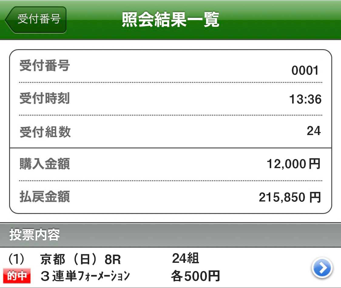 馬券代総額:3万6000円