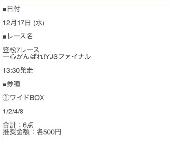三連複の馬券代を5倍の1点1000円にして参加したら
